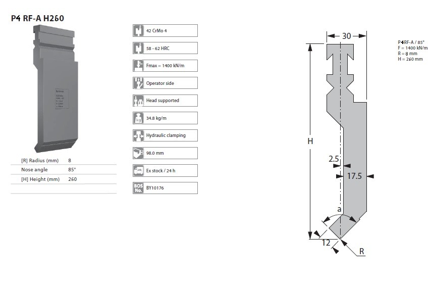 Пуансон для листогибочного пресса с системой крепления Byeler/Xpert P4 RF-A/85 L=515, H=260, R=8.